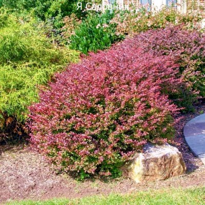 Этот сорт барбариса отлично подходит для создания живых изгородей и ярких бордюров, а также для оформления альпийских горок.